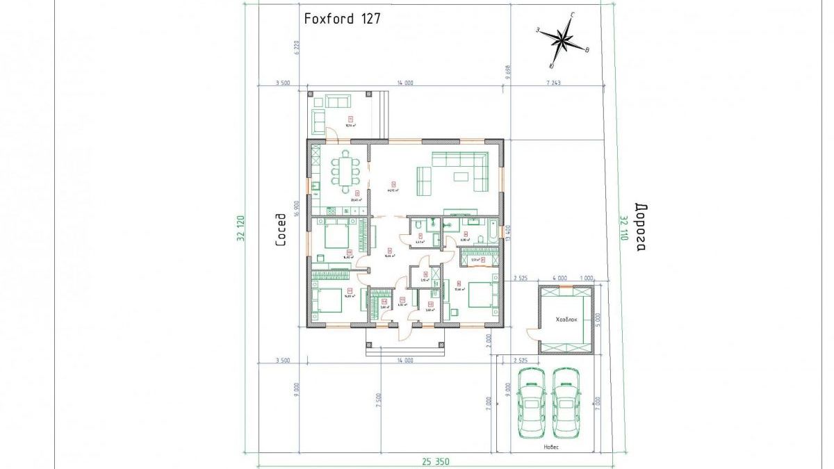 Одноэтажный коттедж площадью 160кв.м. на участке 8 соток в новом, современном поселке бизнес-класса «Фоксфорд», который строится в едином классическом английском стиле, с современной инфраструктурой.